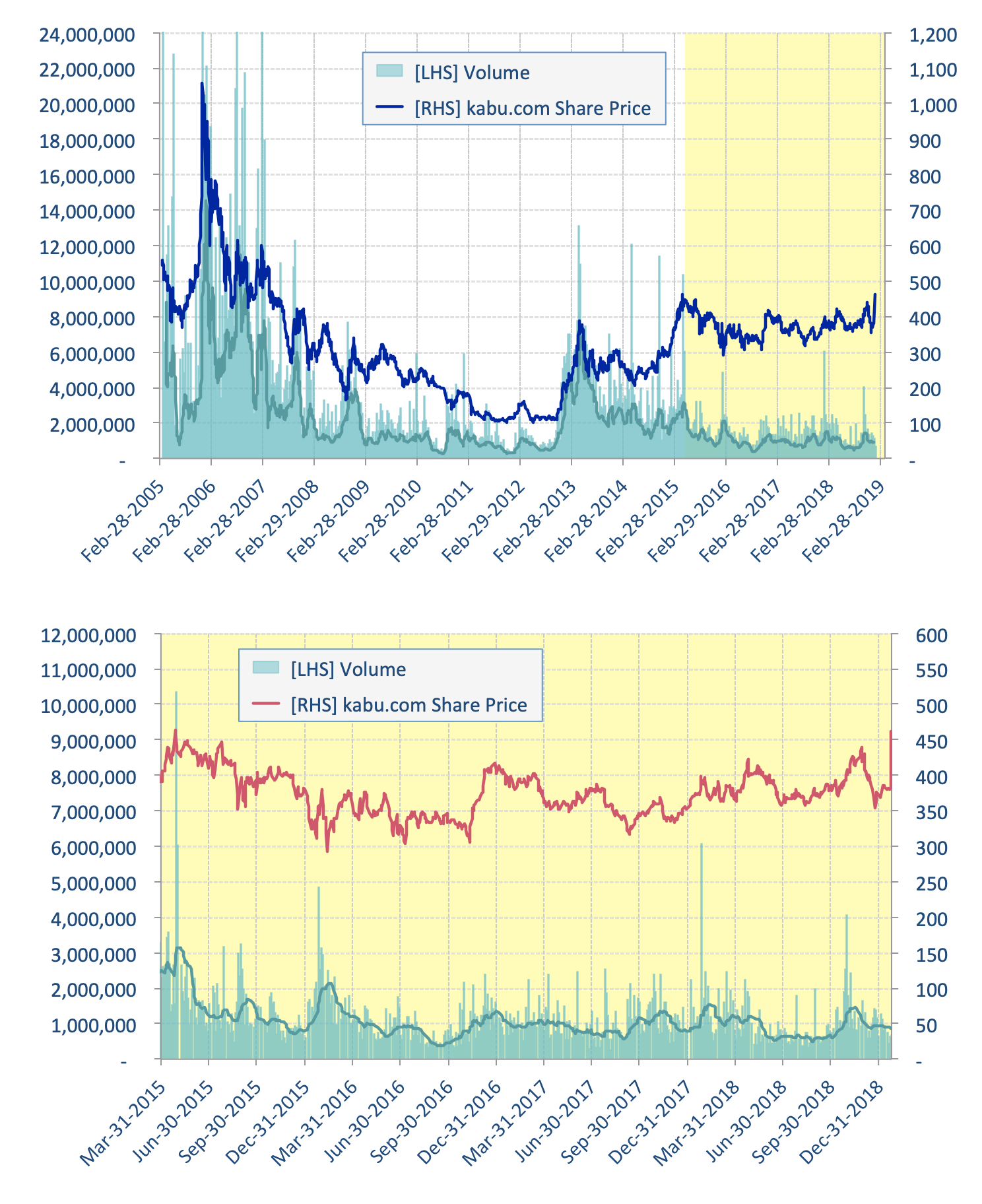 Kabu.com shares were bid limit up all day long and closed at ¥462, which is a 10+ year closing high.