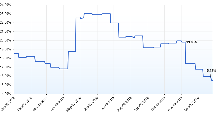 Using a basket of 40 Holdcos I constructed, the average NAV discount in 2018 steadily widened throughout the year. Elsewhere: