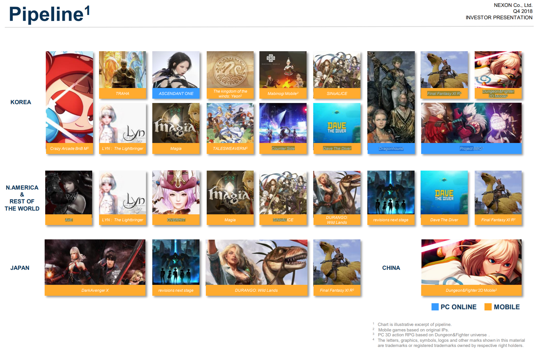 - For the mobile gaming segment, in the future, Nexon’s primary focus includes developing mobile games based on IPs of older PC games.