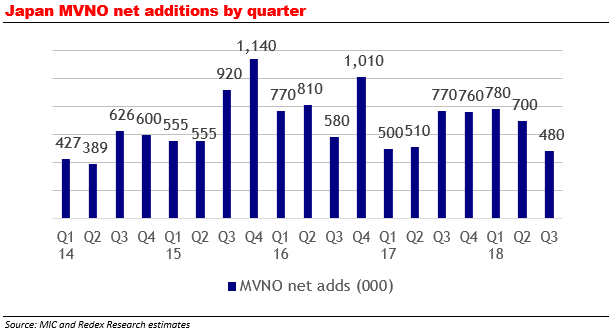 - Japan Mobile: MVNO Data for Q3 Includes Slowest Growth Since 2014 but that Makes Sense for Rakuten