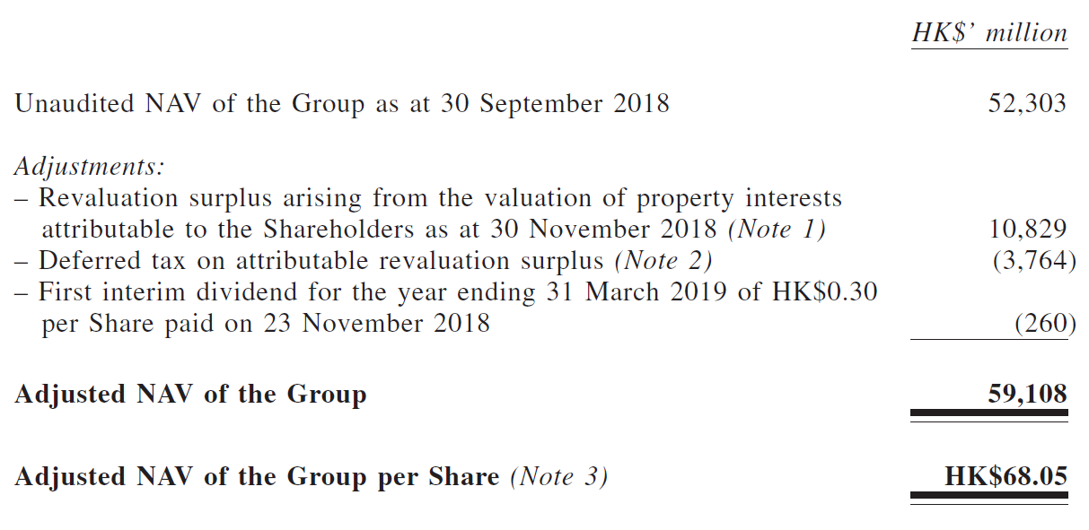 Hopewell Holdings (54 HK), an infrastructure and property developer, is subject to a privatisation proposal from its Chairman, Sir Gordon Wu. The privatisation price of HK$38.80 cash per share is a 46.7% premium over the closing price on 30 November 2018, the day before the announcement of the privatisation proposal.
