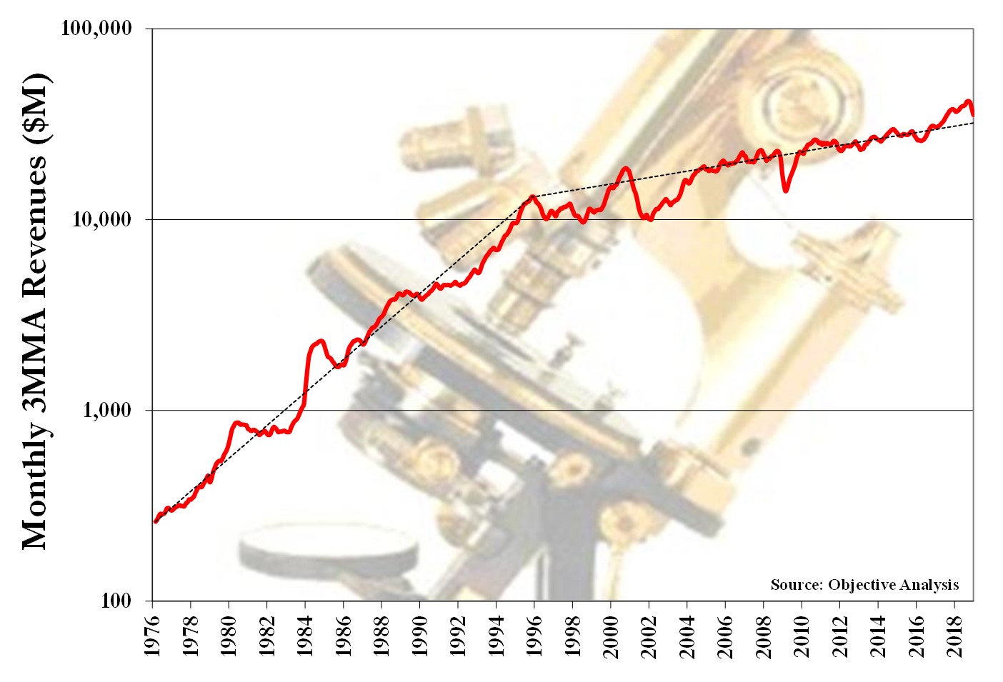 The Semiconductor Industry Association in the US released the latest WSTS figures for January chip revenues. Monthly revenues are down 15.6% from January of 2018. While this is not a surprise to our clients it is frightening to those who anticipated that 2019 would be a continuation of the bonanza enjoyed in 2018.
