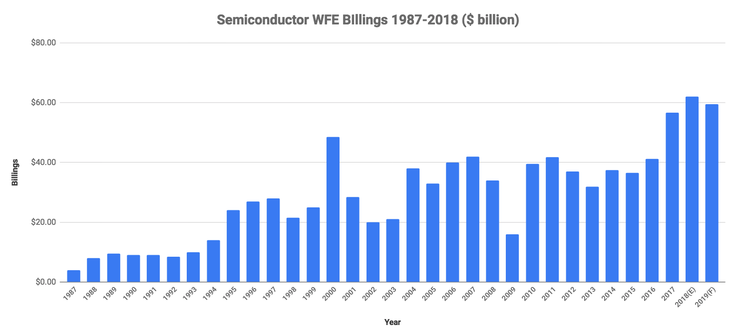 SEMI, the global industry association serving the manufacturing supply chain for the electronics industry, published three different forecasts for wafer fab equipment (WFE) sales in the past week. While the forecasts differ in approach and detail, they all agree on one thing, WFE revenues are continuing to fall and the outlook for 2019 is sharply down on previous estimates.