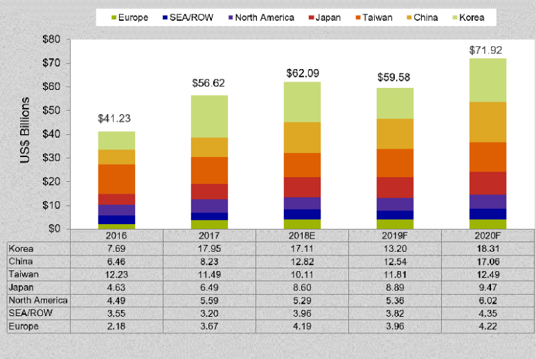 Citing high inventory levels at key customers, Micron guided Q2 FY2019 revenues for $6 billion at the midpoint, down a staggering $1.9 billion, 24% QoQ and 18% YoY. At the same time, Micron revised down their CY2019 bit demand growth forecast for both DRAM (from 20% to 16%) and NAND (35%, the bottom of the previously forecasted range). The company plans to adjust both CapEx and bit supply output downwards to match.