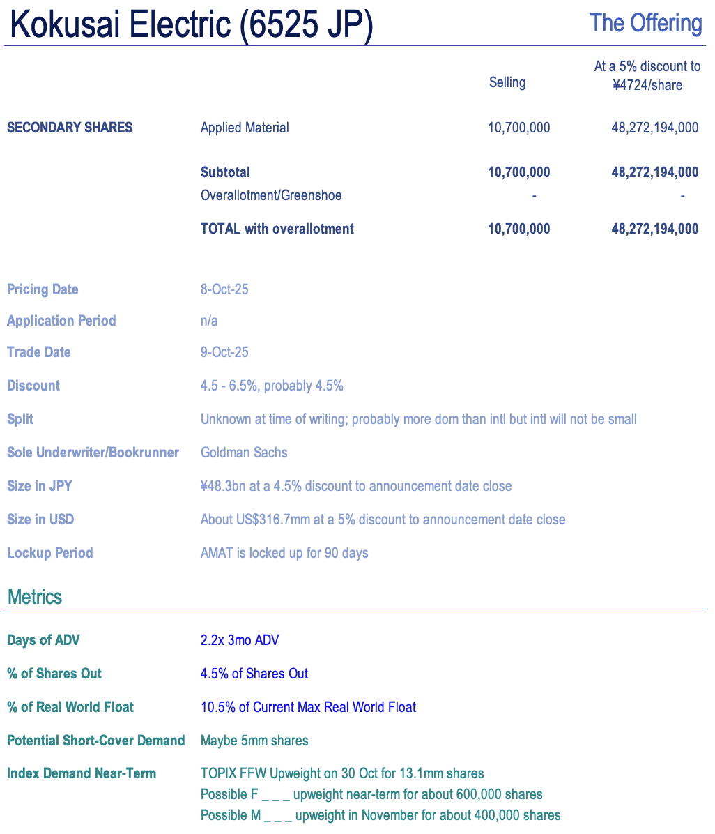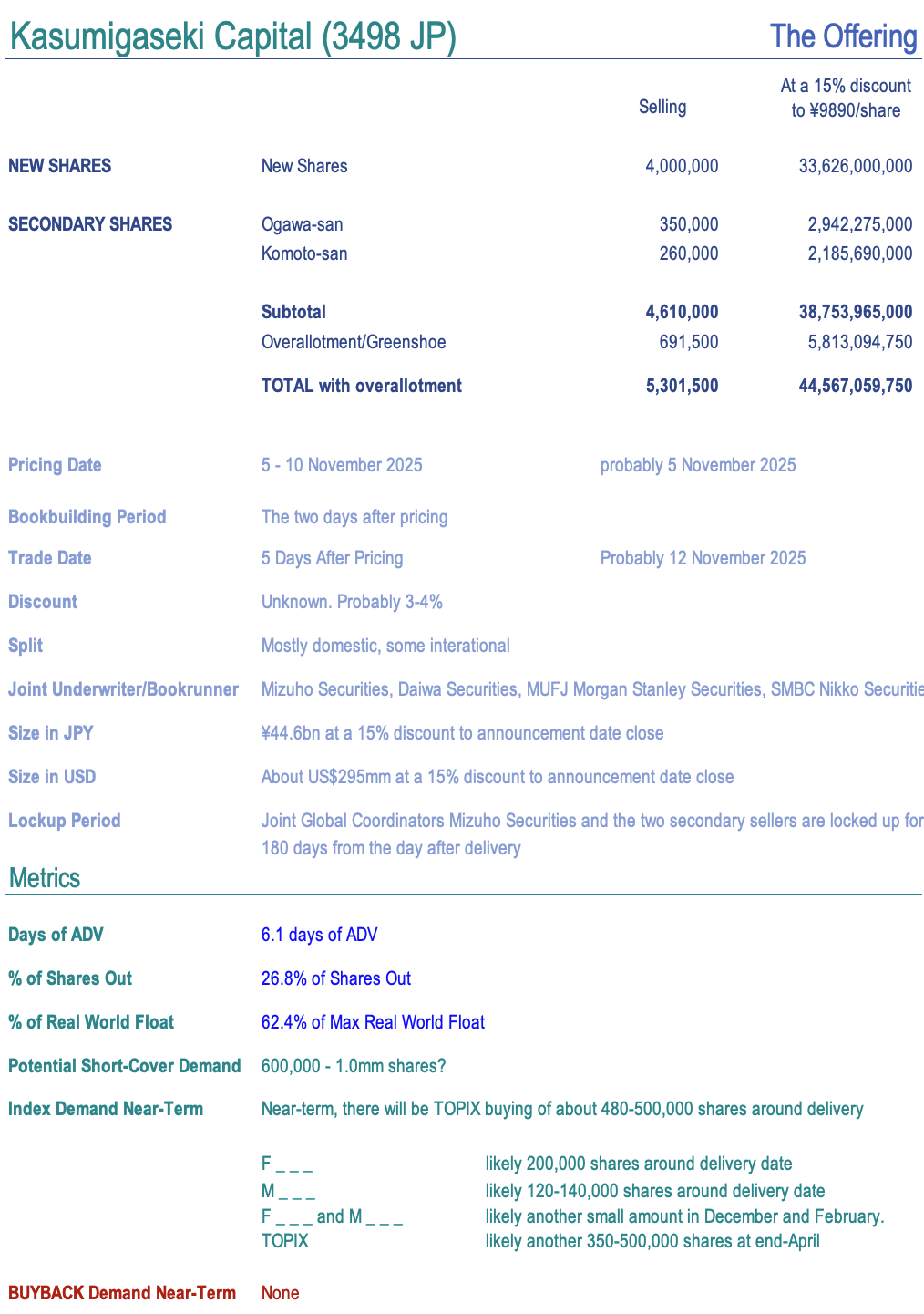 - They are adding float and 10% of shares to the pile, in this ¥4.4-5.0bn offering. But instos are net short this stock.