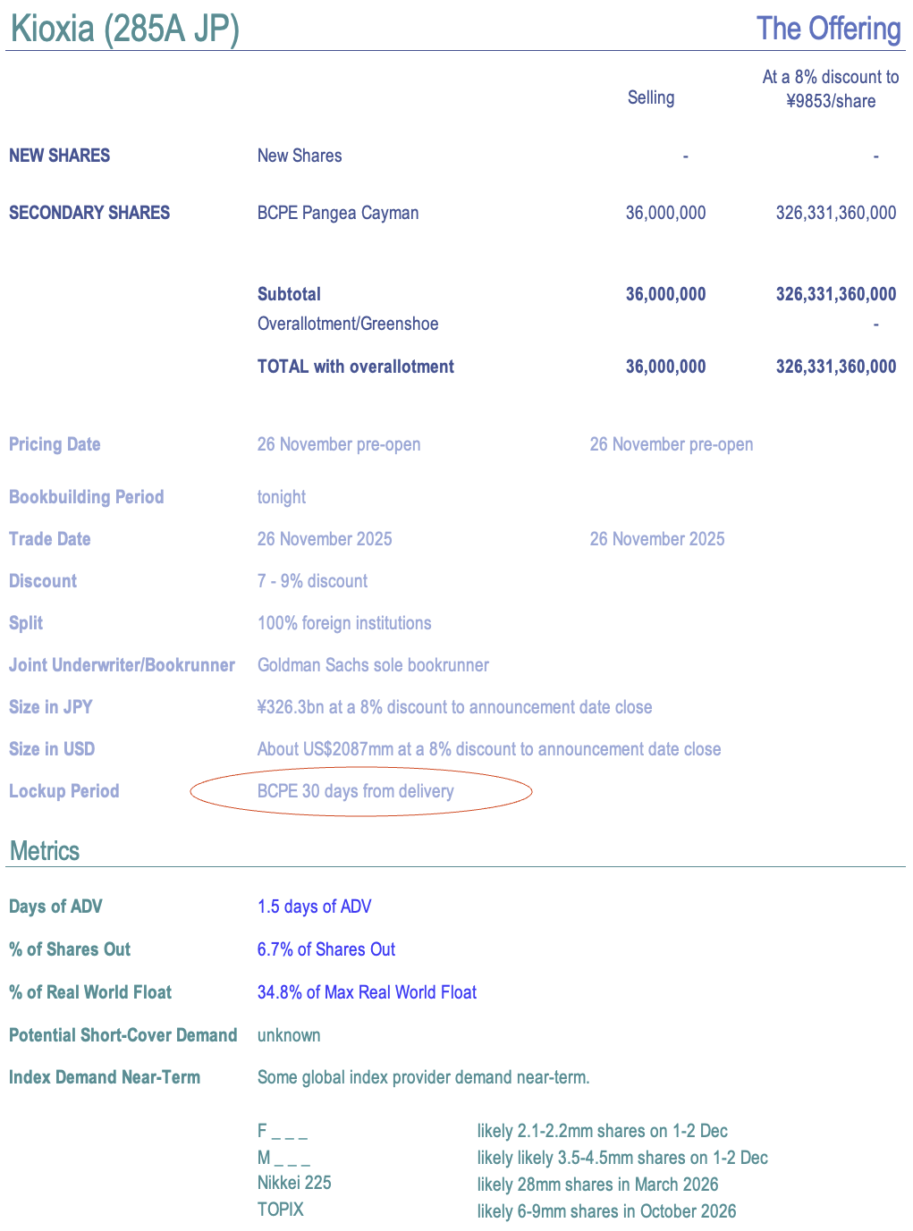 5. Kioxia Placement – US$2bn Deal, Relatively Small, Index Upweight but the Shares Have Runup
