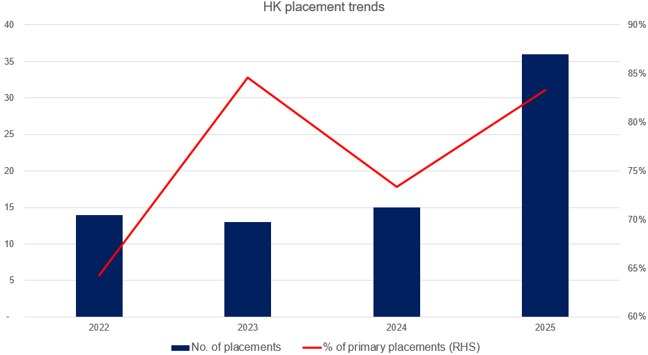 - On the placements front, deals continue to flow through as the market remains receptive.