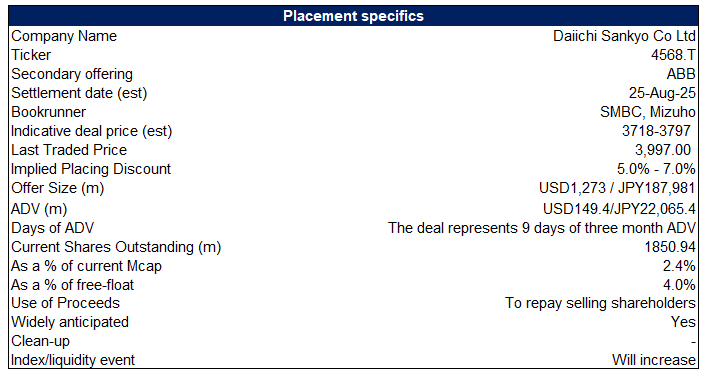 - GNI Group (2160 JP) is looking to raise around US$100m from a primary placement (after upsize).