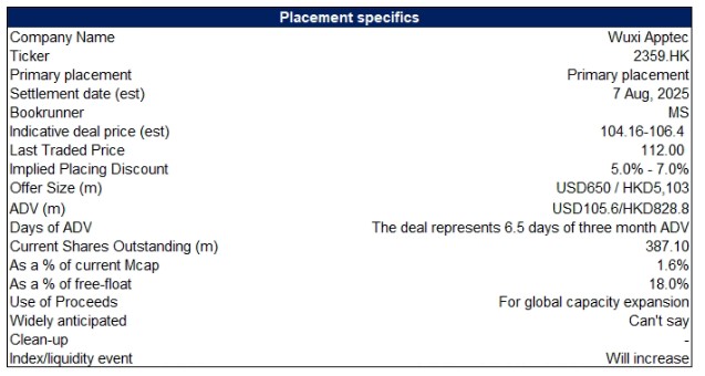 - Ascentage Pharma Group Corp (6855 HK) (AP) aims to raise around US$196m via top-up placement.