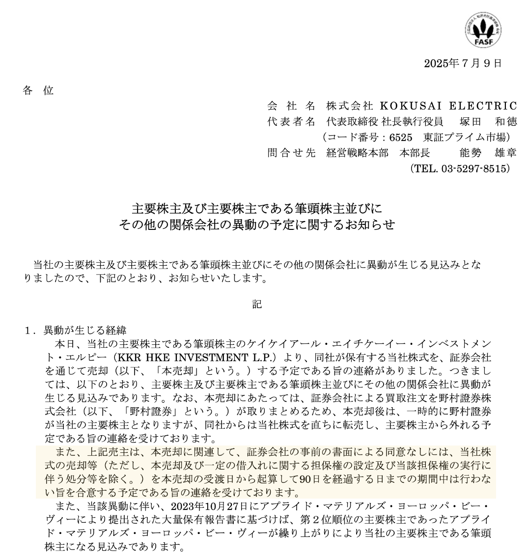 1. [Japan ECM] Kokusai Elec (6525) – KKR’s Lock Up Expiry in 3 Weeks – $700mm Clean-Up Coming?