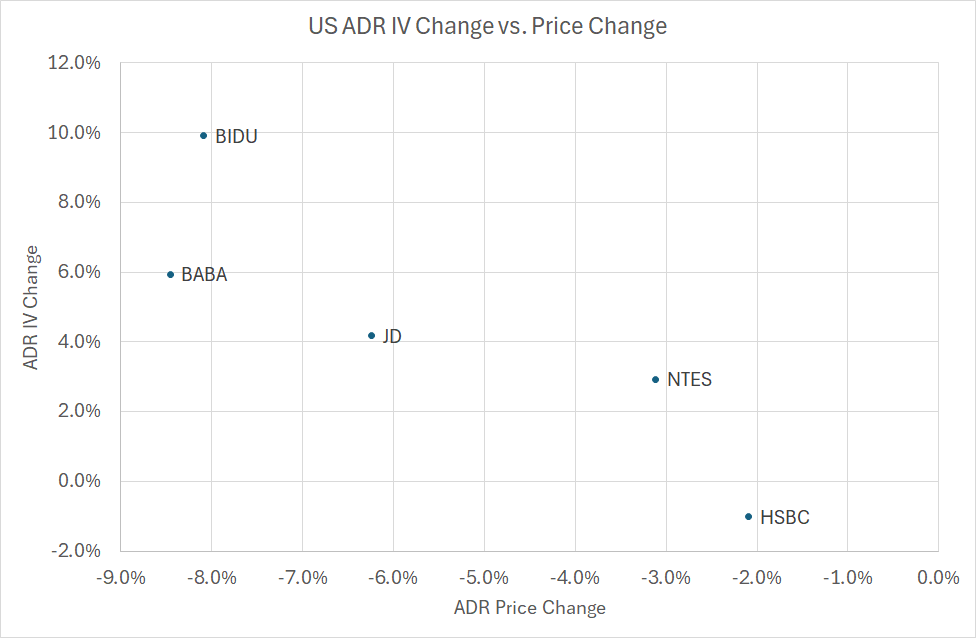 - This Insight details the impact on 15 prominent Hang Seng Index constituents — including Alibaba, Tencent, and HSBC. Implied volatility in U.S.-traded options on these ADRs moved sharply in response.