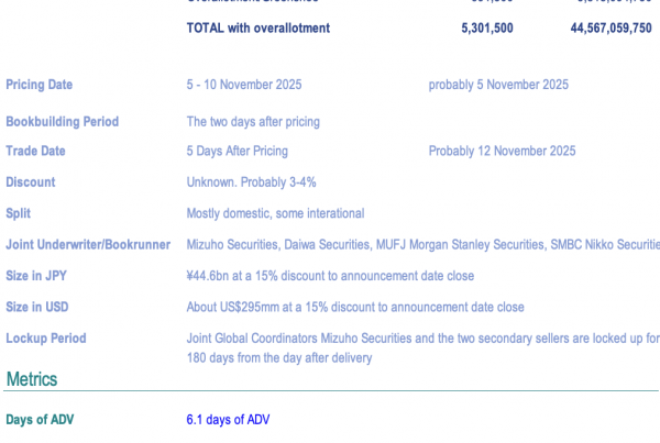 - Human Made (456A JP) aims to raise around US$116m in its Japan IPO.
