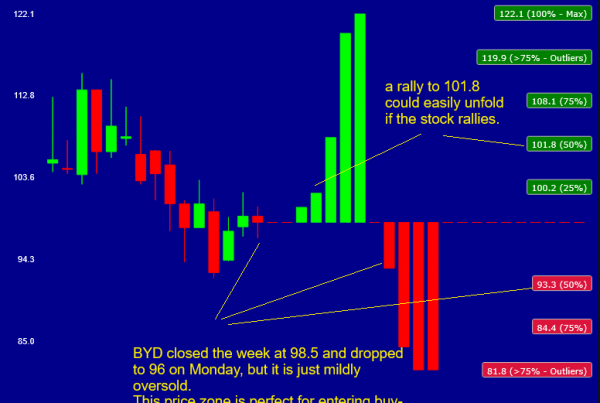 - Our model currently does not indicate the stock is overbought, but a surprise pullback is always possible around earnings releases, so we will discuss also support/buy zones.